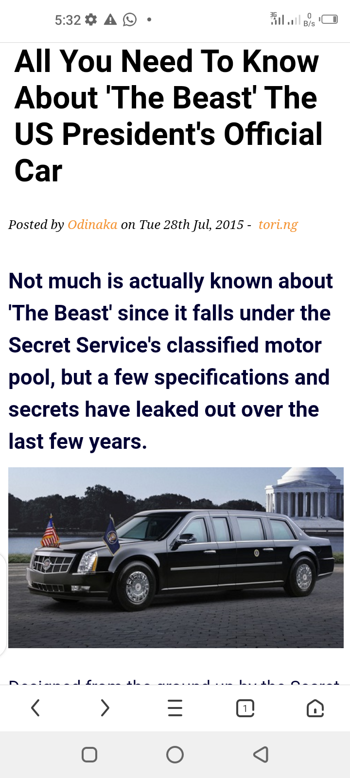 Designed from the ground up by the Secret Service, President Barack Obama’s $1.5 million “Cadillac One,” aka “The Beast,” is a moving fortress impenetrable by bullets and bombs. The president has 12 identical limos in rotation and, when not in use, they’re parked in the basement of the Secret Service’s headquarters and are under 24-hour surveillance. According to the AutoWeek reports: It’s called “The Beast,” but it might surprise you to learn that President’s massive Cadillac isn’t really a Cadillac. And there’s not one, but a dozen, in the highly classified motor pool. The cars travel with their own mechanic, an armed federal agent who carries a vast arsenal of electronic diagnostic devices and tools. We’ve come a long way since JFK’s opentop Lincoln. Until only recently, the Secret Service bought the presidential limousines off the lot, then modified them with super-secret aftermarket products and systems. All that changed when George W. Bush became president. The reason? The stock presidential limos kept breaking down. All the extras the agency added to each vehicle created excess stress and weight beyond the real operational limits of the original cars. As a result, the transmissions often failed, “and the brakes would last about two trips,” said one veteran agent. “The cars were just too heavy, and they were a terror to drive, and even harder to stop.” So the Secret Service decided to design and then build the car from the ground up. “The car may say Cadillac,” explained one agent, “but very little in that car is Cadillac.” Indeed, it is built by an R&D arm of General Motors in Detroit. But “even the Cadillac emblems on the hood and trunk are supersized. The car is really a truck that looks like a limo. And it drives like one, too.” — The fuel tank is armor-plated and encased in special foam to protect it from rupture in case of collision-or small-arms fire. And, perhaps not surprisingly, there’s an onboard Halon fire-suppression system. — What’s in the trunk? Extra weapons, a separate oxygen supply under the president’s seat and emergency medical equipment, including bottles of the president’s blood type in case the ambulance (one always travels in the motorcade) gets cut off. — The Beast is heavy: The armor plating (on five newer models) is so thick and the doors so heavy that it’s nearly physically impossible for the president to open them from inside. — The interior is cut off from the outside world and sealed (in case of chemical attack). There’s an encrypted satellite phone inside and a special interactive video system so the president can conduct secure video conferencing with officials in the Situation Room, embassies abroad or the Pentagon. — The car features military-grade armor (steel, aluminum, titanium and ceramic), surrounded by removable fiberglass sheets on the doors and fenders. — The Beast has special locking mechanisms, and communications and fire-suppression systems. It rides on special Kevlar-reinforced Goodyear run-flats. — The Secret Service has been experimenting with special night-vision cameras and monitors (the camera is mounted inside the grille) to be used in a doomsday scenario if, say, the windshield was somehow compromised or views were obstructed. Any Secret Service agent assigned to drive the president has to take an intense weeklong defensive-driving course on a special track at the Secret Service academy in Beltsville, Md. They practice evasive maneuvers, high-speed cornering and precision driving. “It actually handles quite well, considering how much it weighs,” one agent said. For additional training, the agency uses Chargers, Camaro and Mustangs. What doesn’t it have? Sorry, 007 fans, but there are no rocket launchers, grenades or built-in weapons of any kind. No escape pod or ejection seat. Oh, and here’s a mythbuster: The Beast is not diesel, but a gasoline V8. “Surprisingly,” said one agent, “it has pretty good 0-60 pickup.” 3.7: Average miles to the gallon 12: Number of actual Beasts in service $1.5 million: How much each Beast costs 18: How long the Beast is, in feet 8: Thickness, in inches, of the doors’ armor plating 5: Thickness, in inches, of the windows–bulletproof, of course 15,000: Best guess on how much the Beast weighs, in pounds (the exact number is classified) Here are more security details in pictures: