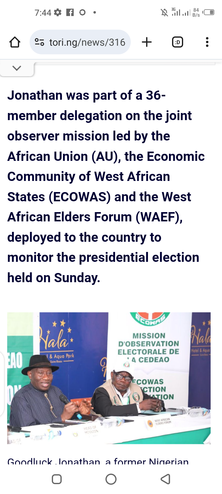Menu BREAKING: Goodluck Jonathan Stranded In Guinea-Bissau Amidst Military Coup Posted by Samuel on Thu 27th Nov, 2025 – tori.ng Share this news: Jonathan was part of a 36-member delegation on the joint observer mission led by the African Union (AU), the Economic Community of West African States (ECOWAS) and the West African Elders Forum (WAEF), deployed to the country to monitor the presidential election held on Sunday. Goodluck Jonathan, a former Nigerian President, is among several African leaders and prominent election observers stranded in Guinea-Bissau after military officers seized power in a coup d’état on Wednesday. Jonathan was part of a 36-member delegation on the joint observer mission led by the African Union (AU), the Economic Community of West African States (ECOWAS) and the West African Elders Forum (WAEF), deployed to the country to monitor the presidential election held on Sunday. Earlier, Tori News reported that the coup followed self-declared victory claims by President Umaro Embaló, who is seeking re-election, and his main challenger, Fernando Dias, even as Guinea-Bissau’s electoral commission had yet to release official results. The military takeover occurred after both candidates separately announced themselves as winners, despite the absence of certified results from the national electoral body. Following the coup, the military closed all land and air borders, shut down airports, and grounded civil movement, effectively trapping the observer delegation and several top officials in the country. Airspace operations were suspended, airports shut, and national entry and exit points blocked by the junta. Reacting hours after the military intervention, the AU-ECOWAS-WAEF joint mission expressed strong reservations, describing the situation as a worrying disruption. “It’s regrettable that this announcement came at a time when the missions had just concluded meeting with the two leading presidential candidates, who assured us of their willingness to accept the will of the people,” the statement read. The mission said the coup statement broke while observers were still within the election confidence-building phase with the candidates, who had earlier shown openness to a peaceful democratic outcome. The 36 observers demanded immediate steps by the African Union and ECOWAS to restore constitutional order, signalling that military intrusion into election outcomes must not stand. They also demanded the immediate release of all detained public officials arrested during the power seizure. The observer delegation is billed to exit Guinea-Bissau on November 29, according to mission scheduling submitted prior to the coup disruption. Share this news: Recent News Nigerian Rapper, Odumodublvck Seen Celebrating Chelsea’s Victory With Trevoh Chalobah At Stamford Bridge (Video) Published on Thu 27th Nov, 2025 Photos Of Repentant Rival Cultists Surrendering Their Arms To Police In Ondo Published on Thu 27th Nov, 2025 My Tribesmen M@ssacred 46 Christians In Plateau Community Despite My Pleas – Fulani Elder Says Published on Wed 26th Nov, 2025 Panic In UNIZIK Female Hostel Over Suspected Herdsman Found On Premises Published on Wed 26th Nov, 2025 This Nigerian Couple’s Wedding In Montenegro Has Got Many People Talking (Photos) Published on Wed 26th Nov, 2025 Latest News Nigerian Rapper, Odumodublvck Seen Celebrating Chelsea’s Victory With Trevoh Chalobah At Stamford Bridge (Video) Published on Thu 27th Nov, 2025 Abducted Anglican Priest, Venerable Achi Who Was Kidnapped With His Wife, D!es In Captivity Published on Thu 27th Nov, 2025 I Was St@bbed And Obesere Lost ₦95 Million – Fuji Singer’s Aide Recounts Thugs Attack In Ondo Published on Thu 27th Nov, 2025 BREAKING: Goodluck Jonathan Stranded In Guinea-Bissau Amidst Military Coup Published on Thu 27th Nov, 2025 Terrorists Now In Full Control Of Kainji National Park — Niger State Lawmaker Laments After Escaping Ass@ssination Attempt Published on Thu 27th Nov, 2025 Nigerian Gospel Singer, Gaise Baba’s Father Is De@d Published on Thu 27th Nov, 2025 Boko Haram Suspects Were Found On Nigerian Army And Police Recruitment Lists — Ex-Rep Deputy Speaker Reveals Published on Thu 27th Nov, 2025 Photos Of Repentant Rival Cultists Surrendering Their Arms To Police In Ondo Published on Thu 27th Nov, 2025 Nigerian Singer, Rema Throws Shade At Colleague, Ayra Starr For Relocating To New York Published on Thu 27th Nov, 2025 DSS Reacts To Reports That It Arrested Nigerian Evangelist Over False Nasarawa Attack Claims Published on Thu 27th Nov, 2025 How A Physically-Challenged Widower, Children Escaped De@th In Ebonyi After Property Worth N40m Went Up In Flames Published on Thu 27th Nov, 2025 President Tinubu Declares Nationwide Security Emergency, Orders 20,000 New Police Recruits Published on Thu 27th Nov, 2025 I’ve Always Wanted To Be A Musician – BBNaija Star, Liquorose Reveals Published on Thu 27th Nov, 2025 Nigerian Cleric Slams FG For Allegedly Arresting An Evangelist Who Raised Alarm Of An Alleged Attack In A Community In Nasarawa (Video) Published on Thu 27th Nov, 2025 BREAKING: White House Locked Down Following Shooting Of Two National Guard Members Published on Thu 27th Nov, 2025 0 1 2 Older » Popular News XRP is expected to break through $5.5 in the second half of the year – BTC Miner cloud mining helps you earn steady XRP returns The Grass-To-Grace Story How A Poor School Teacher, Jack Ma Became A Billionaire Warning! You Can Get These Deadly Diseases Through Kissing Impossible! This Shocking Transformation of a Woman’s Face Using Makeup Has Got People Talking (Photo) Meet India’s Tallest Teenager Who is Only 14 Years Old and Desperately Looking for a Girlfriend (Photos) Unbelievable! Meet the Man Who Survived Three Days in a Whale’s Belly After He Was Swallowed (Photos) 31 Most Romantic Love Quotes to Melt Your Woman’s Heart Omg! Is This the Scariest Man in the World? See How Huge Floyd Mayweather