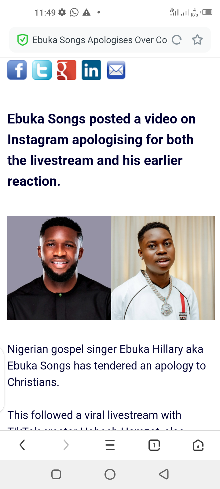 Ebuka Songs Apologises Over Controversial Livestream With Peller Posted by Thandiubani on Fri 29th Aug, 2025 – tori.ng Share this news:      Ebuka Songs posted a video on Instagram apologising for both the livestream and his earlier reaction.  Nigerian gospel singer Ebuka Hillary aka Ebuka Songs has tendered an apology to Christians. This followed a viral livestream with TikTok creator Habeeb Hamzat, also known as Peller in July. Recall that the livestream at Ebuka’s residence, featured worship, prayer, and a moment where Peller spoke in tongues. Some section of Nigerian Christians criticized him over the livestream, saying it was inappropriate. Reacting, Ebuka Songs posted a video on Instagram apologising for both the livestream and his earlier reaction. He wrote: “I want to use this opportunity to address the recent development around the live streaming of the young man (Peller) who came to my house. You know, we had the moment together, and some of the things that happened that were not processed at the scene. So, if there is anybody who was offended by that action, I apologise. And then my reaction as well, I apologise. “That was not my intention. That was never my intention to talk. I’ve never had to speak out, even when people say things about me. But it’s okay. It’s possible to react in the type of way that is not in the character of God, and I apologise. If anyone is taking offence at any of those actions, I sincerely apologise. We are all God’s workmanship, and we’re working into his perfection. So, every day we are working, you know, in God’s knowledge.”