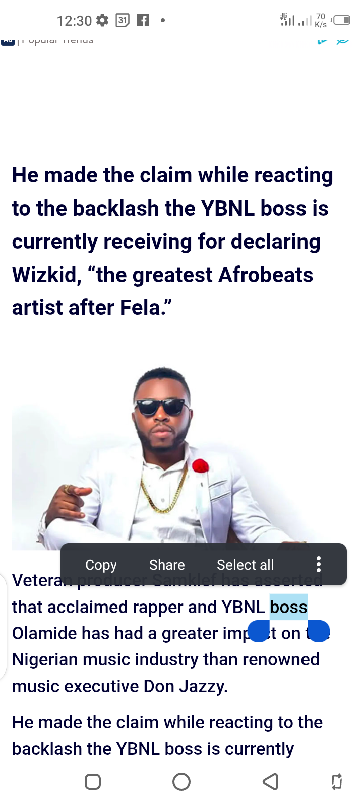 Menu Olamide Has More Impact On Nigerian Music Industry Than Don Jazzy – Producer Samklef Says Posted by Samuel on Sat 15th Nov, 2025 – tori.ng Share this news: He made the claim while reacting to the backlash the YBNL boss is currently receiving for declaring Wizkid, “the greatest Afrobeats artist after Fela.” Veteran producer Samklef has asserted that acclaimed rapper and YBNL boss Olamide has had a greater impact on the Nigerian music industry than renowned music executive Don Jazzy. He made the claim while reacting to the backlash the YBNL boss is currently receiving for declaring Wizkid, “the greatest Afrobeats artist after Fela.” He blasted Olamide’s critics, saying that they were undermining his contributions to the Nigerian music industry by disrespecting his opinion. Samklef argued that Olamide deserves to be respected, claiming that he broke the chain of gatekeepers in the Nigerian music industry. On his X handle, he wrote, “Devil go punish anybody wey talk down on olamide! His impact in the industry even Donjazzy Dey learn. “It was Olamide who humble Don Jazzy after that Headies wahala. And broke the chain of the industry gate keepers..Na him make Don Jazzy dey wear this new mask. “After Wizkid, na Olamide get the real street credibility.” Don Jazzy and Olamide are widely regarded as Nigeria’s most prolific music executives, owning to the almost of talents they have nurtured to stardom through their record labels. Don Jazzy was instrumental to the rise of Wande Coal, D’Prince, Dr Sid, and several artists through the now-defunct Mo’Hits Records, which he co-owned with D’banj. After Mo’Hits split, he launched Mavin Records, which has produced super stars such as Tiwa Savage, Reekado Banks, Korede Bello, Johnny Drille, Rema, and Ayra Starr. On his part, Olamide has through his YBNL imprint launched the careers of artists such as Adekunle Gold, Lil Kesh, Fireboy DML, Asake, and many others. Share this news: Discover more Security system installations Event Coverage Celebrity fashion items Marriage advice books Metro News Technology Reviews Cloud mining services Tech gadgets and accessories Business Insights Celebrity Gossip Recent News Obiano’s De@th Rumour Is Wicked, Irresponsible – Governor Soludo Published on Sat 15th Nov, 2025 Olamide Reacts To Backlash Over His Declaration Of Wizkid As Greatest Afrobeats Artist After Fela Published on Sat 15th Nov, 2025 I’m Alive, Hale And Hearty – Ex-Anambra Governor, Willie Obiano Debunks De@th Rumours Published on Sat 15th Nov, 2025 Nigerian Actor, Baba Ijesha Released From Prison After 5 Years Published on Sat 15th Nov, 2025 Fuel Price: Why Nigerian Govt Suspended 15% Petrol Import Duty – Marketer Published on Fri 14th Nov, 2025 Latest News How Living Abroad Humbled Me – Veteran Actress, Omotola Jalade-Ekeinde Opens Up Published on Sat 15th Nov, 2025 ISWAP Terrorists Ambush Army Convoy, Reportedly Abduct Commander, K!ll Soldiers Published on Sat 15th Nov, 2025 It Was Shocking And Terrifying – Actress Omotola Jalade Shares Experience Of Life-threatening Surgery Published on Sat 15th Nov, 2025 EFCC Moves To Probe Man Seen Spraying Naira Notes On ‘Thanksgiving Cow’ Inside Church In Delta (Video) Published on Sat 15th Nov, 2025 Olamide Has More Impact On Nigerian Music Industry Than Don Jazzy – Producer Samklef Says Published on Sat 15th Nov, 2025 Obiano’s De@th Rumour Is Wicked, Irresponsible – Governor Soludo Published on Sat 15th Nov, 2025 Olamide Reacts To Backlash Over His Declaration Of Wizkid As Greatest Afrobeats Artist After Fela Published on Sat 15th Nov, 2025 God’s Judgment Awaits Sheikh Gumi For Claiming We Buried Empty Caskets – Rev. Dachomo Blows Hot (Video) Published on Sat 15th Nov, 2025 I Won’t Go Broke Even If I Stop Doing Music Today – Spyro Boasts (Video) Published on Sat 15th Nov, 2025 S*xual Allegations: Police Urged To Probe Suspended Paystack Co-Founder, Ezra Olubi Published on Sat 15th Nov, 2025 India Deports Nigerian Man Over Visa Violation, Drug Peddling Published on Sat 15th Nov, 2025 Face Of Ex-Banker Arraigned By EFCC For Alleged Criminal Diversion Of Customer’s $510,000 (Photo) Published on Sat 15th Nov, 2025 I Received The Beating Of My Life Because I Nursed His Injured Brother – Nigerian Lady Reveals Domestic Abuse She Faced In Her Marriage Published on Sat 15th Nov, 2025 Blog Post Of Paystack Co-Founder Ezra Olubi Talking About Being Bis*xual And Wanting To Have S3x With A Male Co-Worker Emerges Published on Sat 15th Nov, 2025 I’m Alive, Hale And Hearty – Ex-Anambra Governor, Willie Obiano Debunks De@th Rumours Published on Sat 15th Nov, 2025 0 1 2 Older » Popular News See the Horrifying Moment Villagers Cut-open a Giant Python’s Stomach After it Swallowed a Man Whole (Photos+Video) 20 Top Richest Pastors in the World… See How Many Nigerian Pastors Made the List Touching Story of ‘Big Booty’ African Slave, Sara Baartman Who was Abused by Europeans and Used as a Circus Animal (Photo) Abomination! Wife Catches Husband Having Hot S*x with a Goat in their Home Check Out Hilarious President Mugabe Quotes that Will Leave You Laughing Hard and Peeing in Your Pants What a Testimony! Woman Recounts Victory in Spiritual Warfare During Child Labour Ex President IBB Opens Up on Dele Giwa’s Death and 159 Officers on Crashed Plane (Photos) Pastor Caught Pants Down While Trying to Sleep With a Married Woman (Photo+Video) The Rise and Fall of one of Nigeria’s Deadliest Armed Robbers, Godogodo (Photos+Videos) Funny Picture Of Kano Traffic Warden Arresting Donkey For Causing Traffic Jam Sports 2026 WCQ Playoffs: Nigeria To Face DR Congo In African Playoff Final 2026 WCQ Playoffs: Chelle Drops Lookman, Troost-Ekong, Starts Osimhen vs Gabon Why Super Eagles Can’t Afford To Miss Out On Another World Cup – Iwobi 2026 WCQ Playoff: ‘A Real Shame’ – Troy Deeney Slams Nigeria Over Bonus Issues Super Eagles Only Demanded For Outstanding Allow