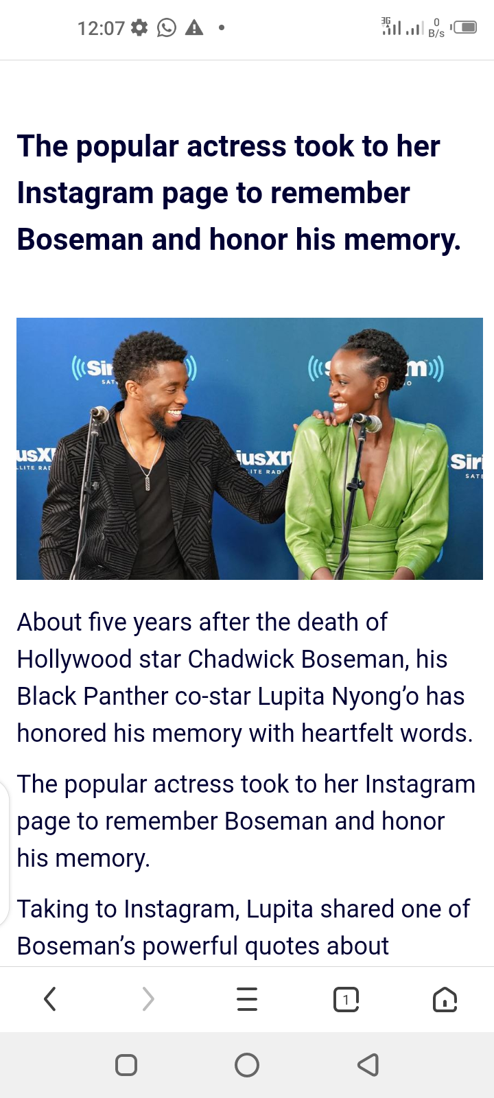 Popular Actress, Lupita Nyong’o Pens Emotional Tribute To Chadwick Boseman On His 5th De@th Anniversary Posted by Samuel on Fri 29th Aug, 2025 – tori.ng Share this news:       The popular actress took to her Instagram page to remember Boseman and honor his memory.  About five years after the death of Hollywood star Chadwick Boseman, his Black Panther co-star Lupita Nyong’o has honored his memory with heartfelt words. The popular actress took to her Instagram page to remember Boseman and honor his memory. Taking to Instagram, Lupita shared one of Boseman’s powerful quotes about purpose, writing: “Purpose is an essential element of you. It is the reason you are on the planet at this particular time in history. Your very existence is wrapped up in the things you are here to fulfill.” – Chadwick Boseman Alongside the quote, Lupita added, “Forever missed 🖤 Always remembered 🦋.” View post below…