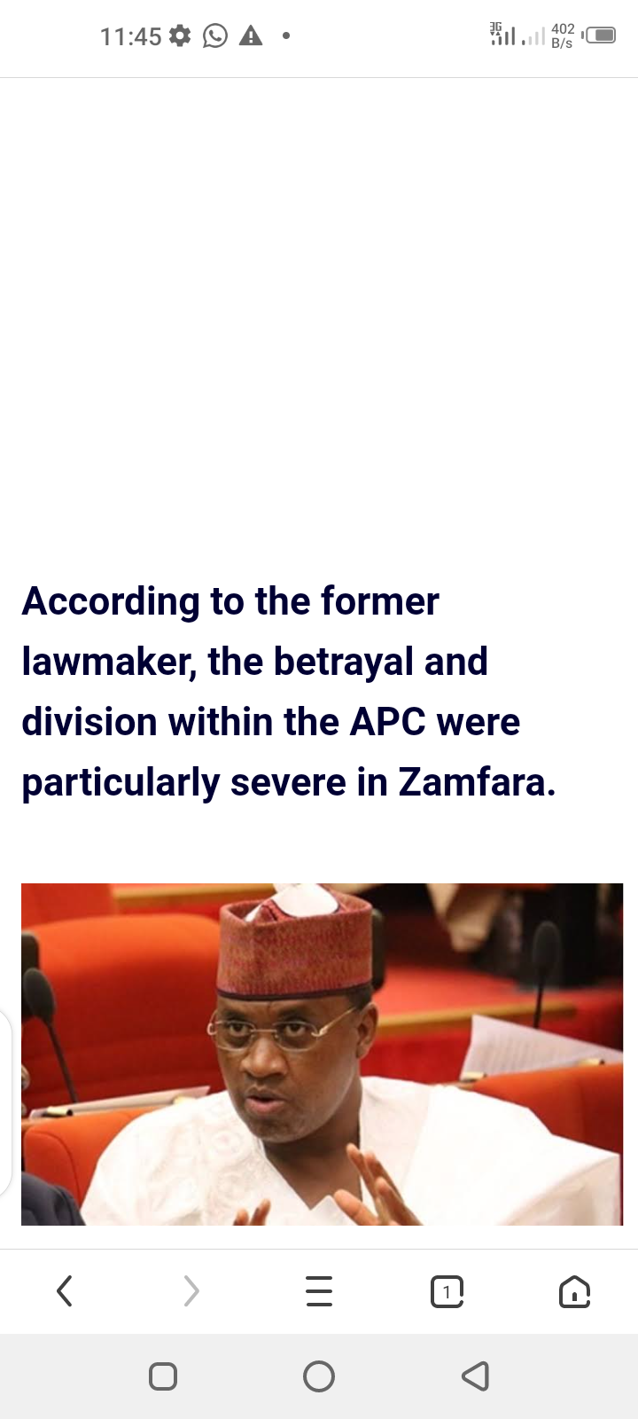 Senator Kabiru Marafa Dumps APC Posted by Thandiubani on Fri 29th Aug, 2025 – tori.ng Share this news:      According to the former lawmaker, the betrayal and division within the APC were particularly severe in Zamfara.  Former Senator Kabiru Marafa has announced his decision to dump the All Progressives Congress (APC). The senator announced his decision in a video clip, speaking in Hausa, where he addressed his supporters. The former lawmaker accused the ruling party of betraying its members and being deeply divided in Zamfara state, adding that he had had extensive consultations with party members over the past two days regarding the APC’s performance over the last two years. According to the former lawmaker, the betrayal and division within the APC were particularly severe in Zamfara. He said: “I want to use this medium to inform my supporters in Zamfara state, north and Nigeria as a whole that after a series of meetings with my people for about two days regarding the issue of politics starting from two years back of the APC government, we feel it is necessary to inform the public that APC as a party has betrayed and cheated us in Zamfara state and Nigeria.” Speaking further, he said the unresolved factional struggle between party leaders, Mai Mala Buni, the Governor of Yobe State, and Bello Matawalle, the former Governor of Zamfara State and Nigeria’s Defence Minister, as a key factor. He said, “In the state, the betrayal is at its highest peak because since Bala Buni took over the affairs of the party from former governor Matawalle, they have not held a single meeting up till this moment. “The party has been divided into two parts: one part is for Bala Buni and the other is for Matawalle. This is two years and six months now, we ask them to resolve their differences, and nothing has been done.” “So, because of these, I have decided to quit the APC party, and I will continue my consultation to see if, in no distant time, I will announce my new party.”
