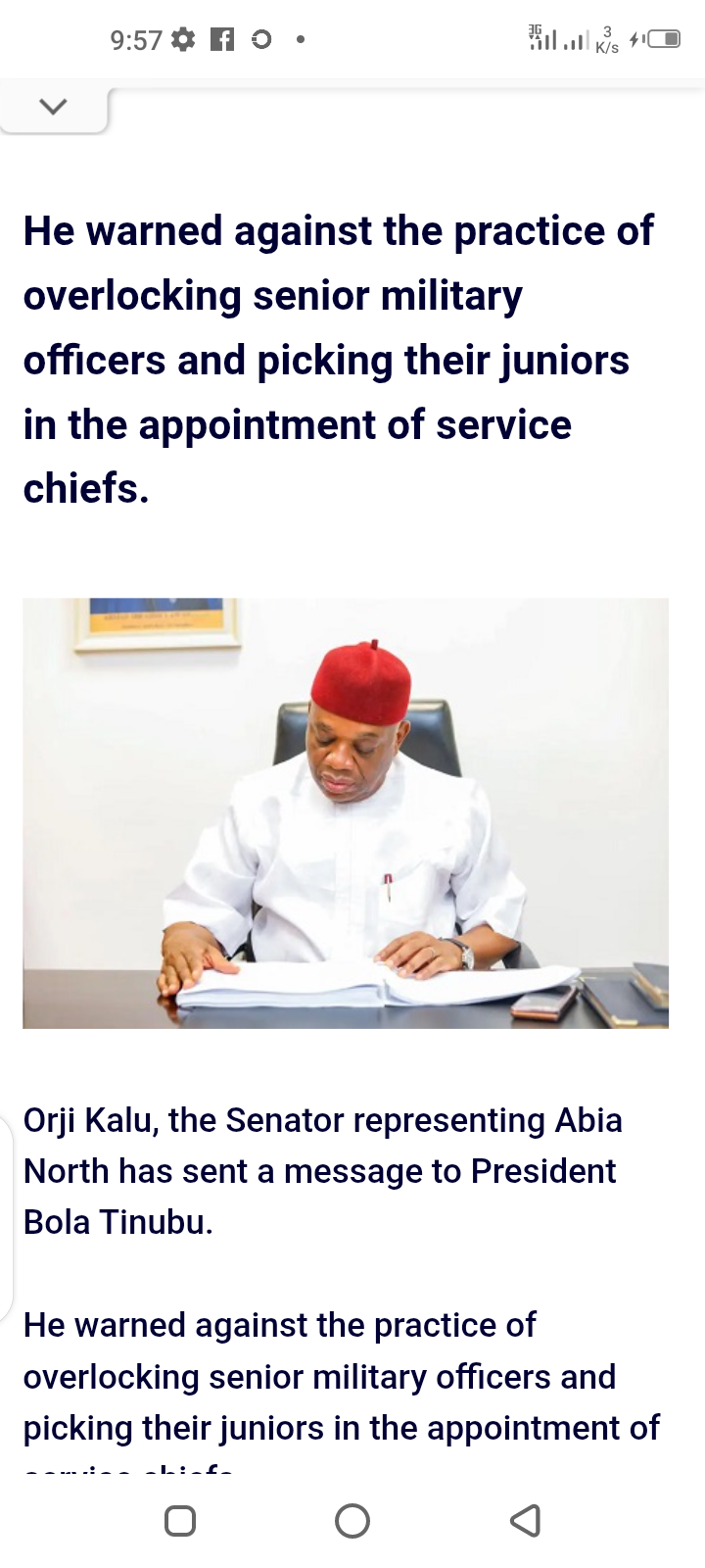 Specifically, the Abia senator faulted the recent trend in the appointments of the Chief of Army Staff, the Chief of Naval Staff and the Chief of Air Staff.