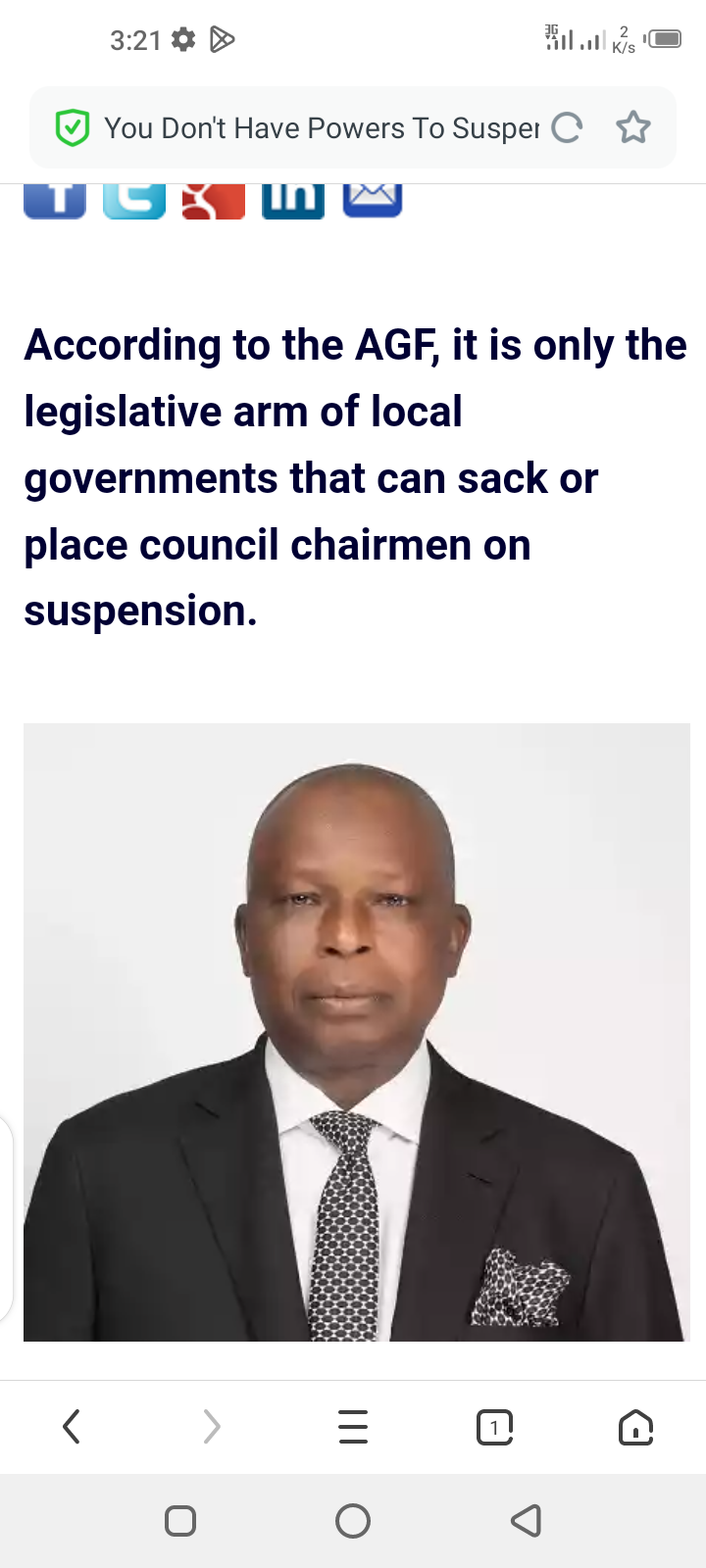 You Don’t Have Powers To Suspend LG Chairmen – AGF Fagbemi Warns Governor Okpebholo Posted by Thandiubani on Fri 29th Aug, 2025 – tori.ng Share this news:      According to the AGF, it is only the legislative arm of local governments that can sack or place council chairmen on suspension.  Attorney General of the Federation and Minister of Justice, Lateef Fagbemi, SAN, has warned the Edo State Governor, Monday Okpehbholo that he has no power to suspend local government Chairmen. This is coming after the Edo State Governor had effected the suspension of the Chairmen in an order he sent to the Edo State House of Assembly. Acting on that order, the Assembly suspended the 18 local government chairmen and their vice chairmen on December 17, 2024. Governor Okpebholo had accused the chairmen and their deputies of insubordination. He also alleged misconduct on the ground that they did not submit their statement of finances to him. But AGF, Fagbemi, SAN, had faulted the action when he answered to questions from newsmen at a public function in his office on Thursday. AGF Fagbemi, SAN, said that it was only the legislative arm of local governments that can sack or place council chairmen on suspension. He stated that under the current dispensation, local government chairmen cannot just be removed or suspended by any governor without following due process of law. “I am aware that since July 11 when the Supreme Court delivered a landmark judgment, local government administration has taken a new turn, different from the old order. “At any rate, we are still studying the situation but before final reaction, it must be stated categorically and emphatically that for now, local government chairmen can only be removed through the legislative arm of the local government itself and not the State House of Assembly.”